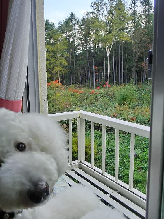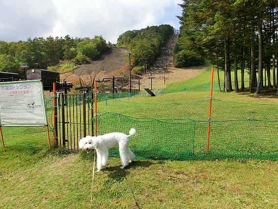 こちらはドックランと天狗山プレイゾーン(グラフスキーやパターゴルフができます)の間を登って上から見渡した所です。ラナちゃんご満悦♪