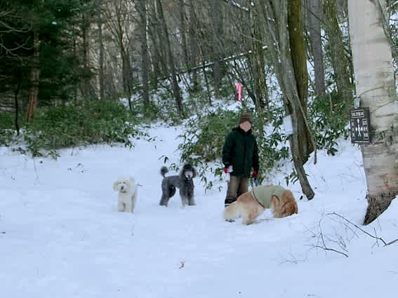 当館裏手の自然遊歩道、冬はわんこ達の雪遊びにもってこい
