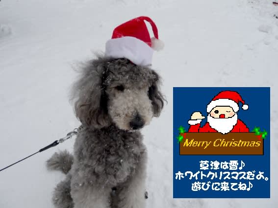 1012241 スタンプ君クリスマスの記念撮影より、雪遊びに行きたくて、ウズウズ草津は今年もホワイトクリスマス今日はサラサラのパウダー雪で気持ちいいです